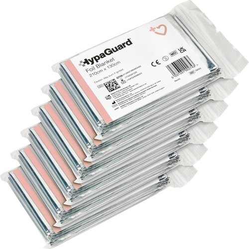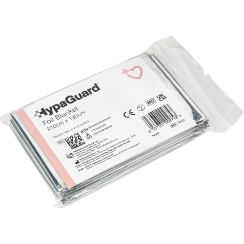 The HypaGuard Foil Blanket is a mylar covering designed to reflect body heat back towards the wearer to keep them warm. They are ideal as an emergency option to hypothermia or comforting casualties in shock. The mylar construction reflects over 90% of the wearer's body heat.