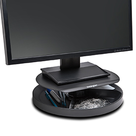 Maximize your desktop space with this professional monitor stand. The patented, spinning multi-compartment storage area underneath the platform provides easy access to your most-used desktop tools and accessories. Measure, adjust and fit yourself with Kensington’s patented SmartFit System so you can customise your monitor height using our colour-coded personal comfort system.