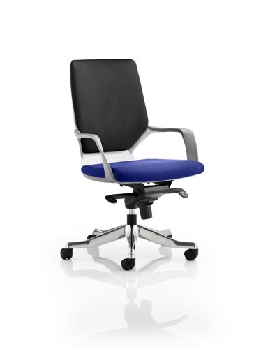 Elegant white or black acrylic shells cradle the most stylish of executive chairs – the Xenon. The shell swoops down from the generously proportioned backrest to integral slim, shaped, arms which fold around to the underside of the seat shell. A high quality knee tilt ensures maximum comfort and avoids discomfort through upper leg blood vessel constriction. High density moulded foams and an integral contoured lumbar support add to the easy-seating package. A brushed aluminium five star base continues the focus on